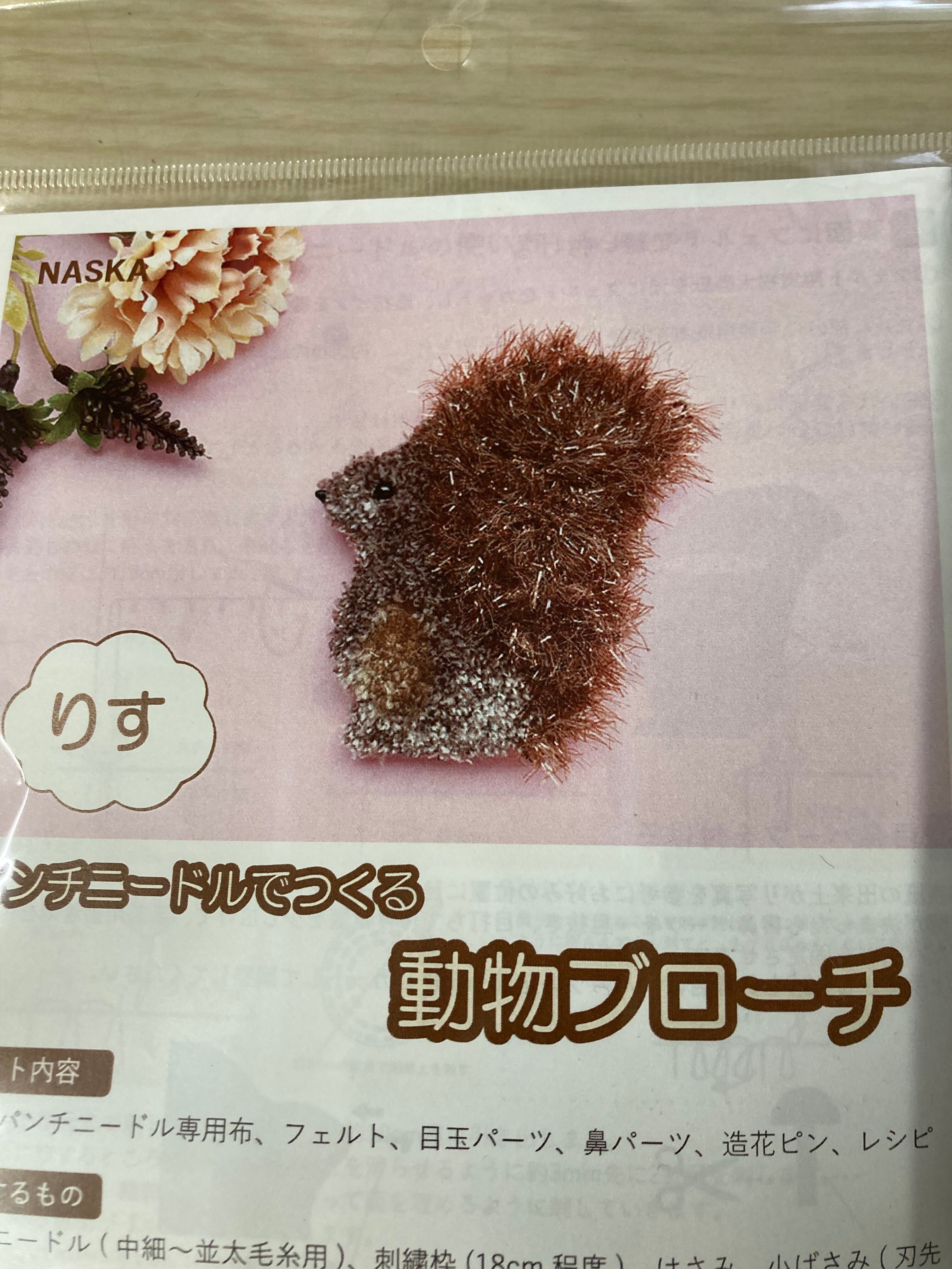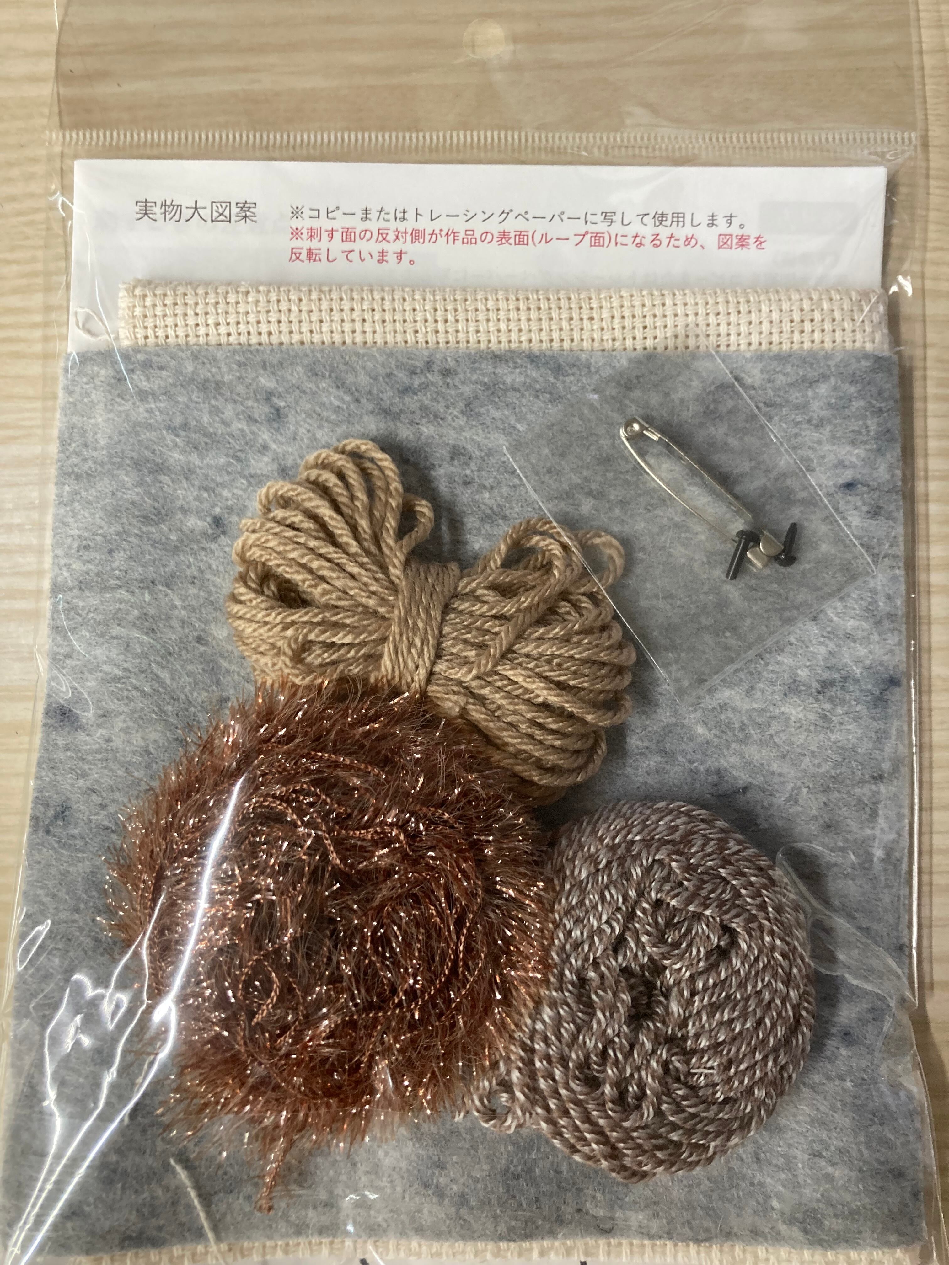 出来上がりサイズ:縦約9cm×横約7.5cm セット内容:毛糸、パンチニードル専用布 フェルト、目玉・鼻パーツ 造花ピン、レシピ パンチニードル